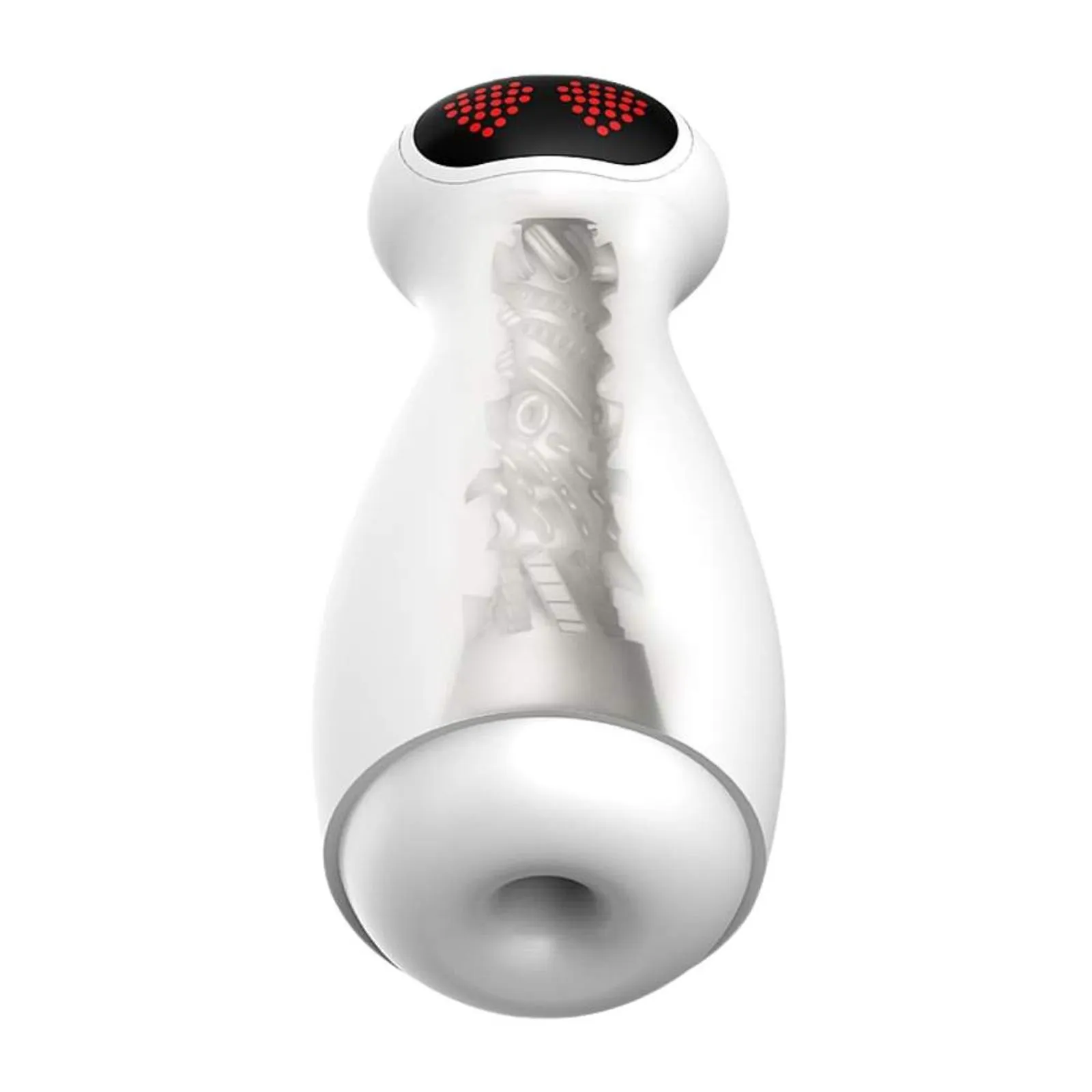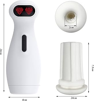 É um masturbador masculino automático em formato de lanterna Robô, com 10 modos de vibração, 3 modos de sucção, com viva voz.